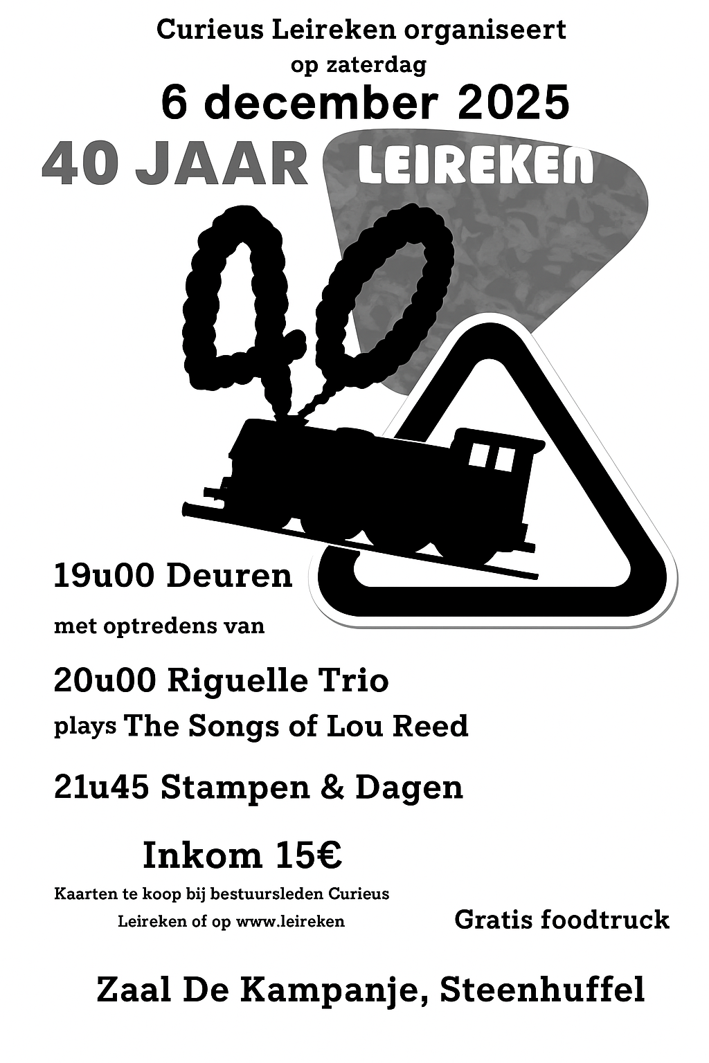 Door een last-minute wijziging in de planning zal Trio Riguelle (met Songs of Lou Reed) eerst optreden. Zij vullen het podium om 20u00.